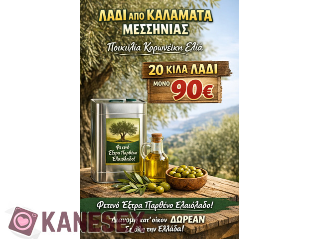 Έξτρα παρθένο ελαιόλαδο από καλαμάτα μεσσηνίας 20 κιλά παρθένο ελαιόλαδο από κορωναίηκια ελιά μόνο στα 90€ ευρώ ???? δωρεάν διανομή κατ οίκον σε όλη την αττική 6943981680