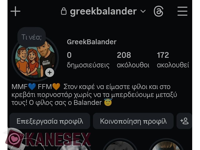 Το KaneSex Δεν επαληθεύει την γνησιότητα των φωτογραφιών και των στοιχείων του κάθε χρήστη. Η επαλήθευση προφίλ επαληθεύει μόνο το γένος του χρήστη (γυναίκα,ζευγάρι κτλπ)